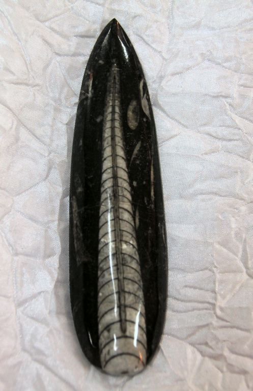 Orthoceres was one of the first members of the class Cephalopoda to appear in the fossil record. Cephalopods are fast moving predatory marine invertebrates. Living members of this group include squid, octopi and nautiloids. Orthoceres was a creature similar to a squid with eyes, tentacles and a 'toothlike' beak to tear its prey apart. They had the ability to squirt ink to hide their escape from an enemy.