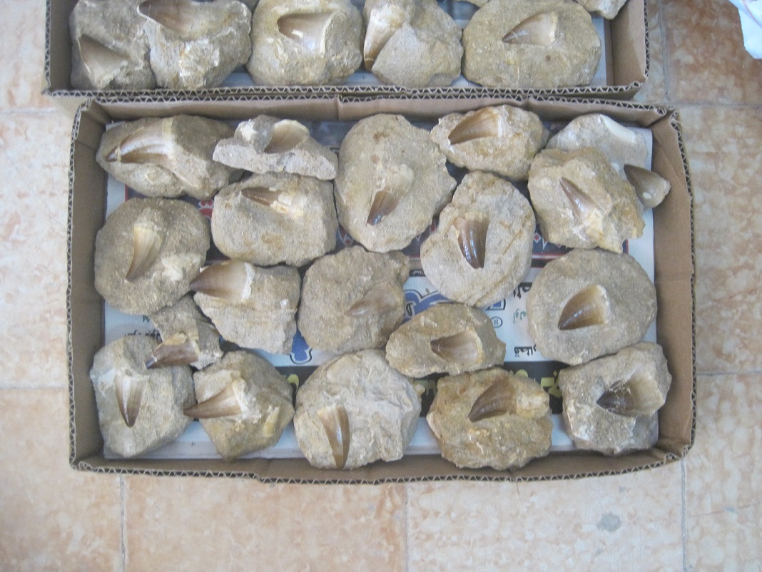 A shark tooth is one of the numerous teeth of a shark. Sharks continually shed their teeth, and some Carcharhiniformes shed approximately 35,000 teeth in a lifetime. In some geological formations, shark's teeth are a common fossil. These fossils can be analysed for information on shark evolution and biology, especially because the teeth are often the only part of the shark to be fossilized, in fact fossil teeth comprise much of the fossil record of the Elasmobranchii, extending back hundreds of millions of years.