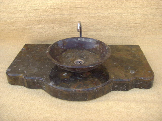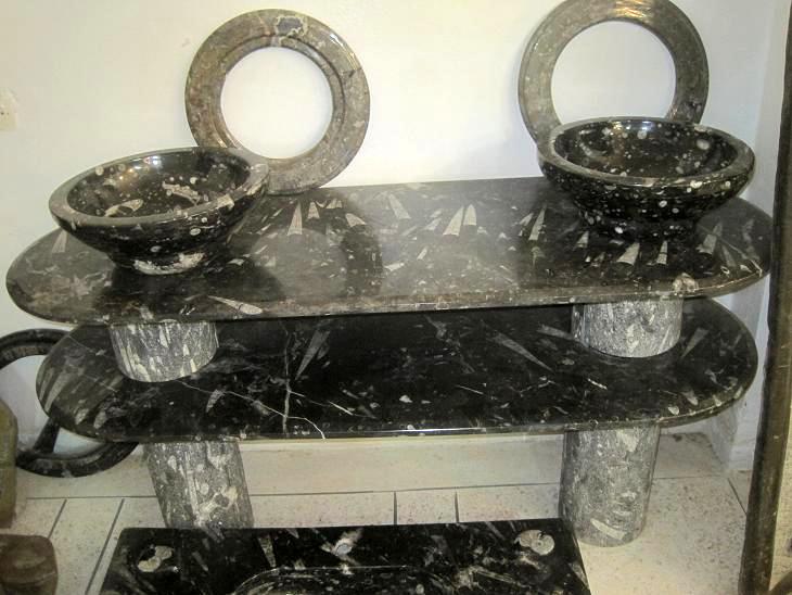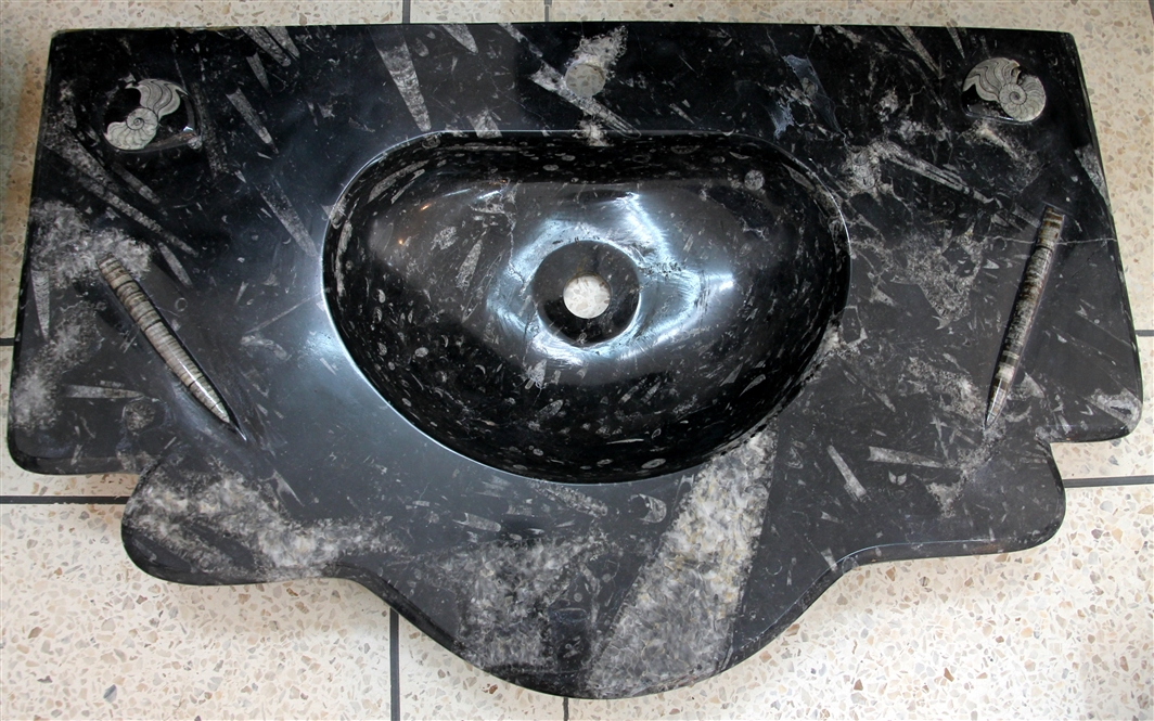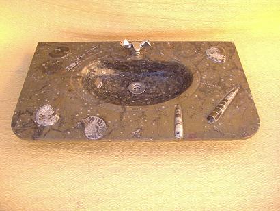 Natures work can be seen in these wonderful stone Sinks. The 345 million year old fossil Ammonites and Orthoceras in each Sink create a stunning natural beauty that will add to your bathroom. These are a “one of kind” find that will enhance your home decoration.