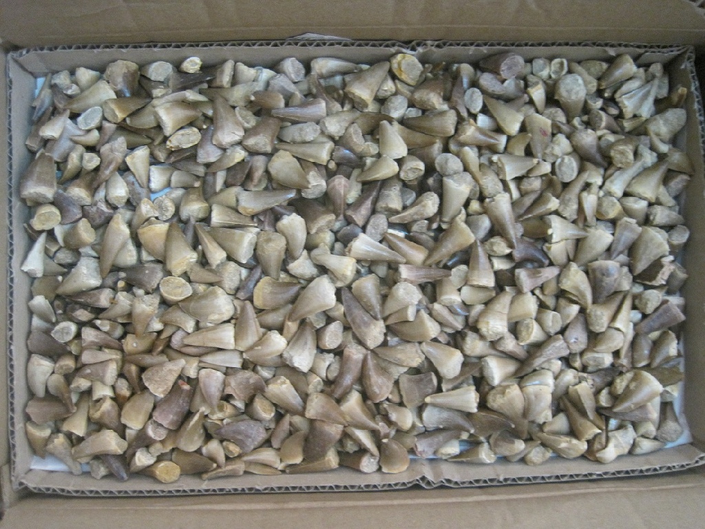 A shark tooth is one of the numerous teeth of a shark. Sharks continually shed their teeth, and some Carcharhiniformes shed approximately 35,000 teeth in a lifetime. In some geological formations, shark's teeth are a common fossil. These fossils can be analysed for information on shark evolution and biology, especially because the teeth are often the only part of the shark to be fossilized, in fact fossil teeth comprise much of the fossil record of the Elasmobranchii, extending back hundreds of millions of years.