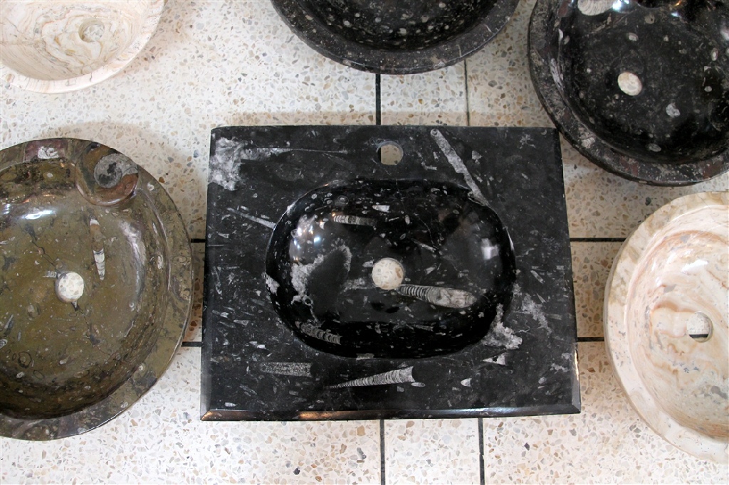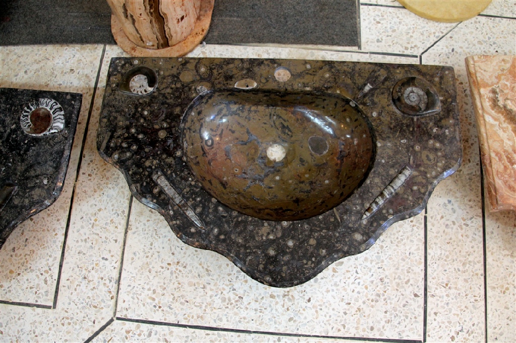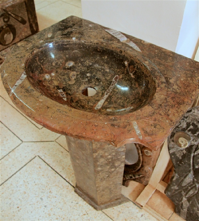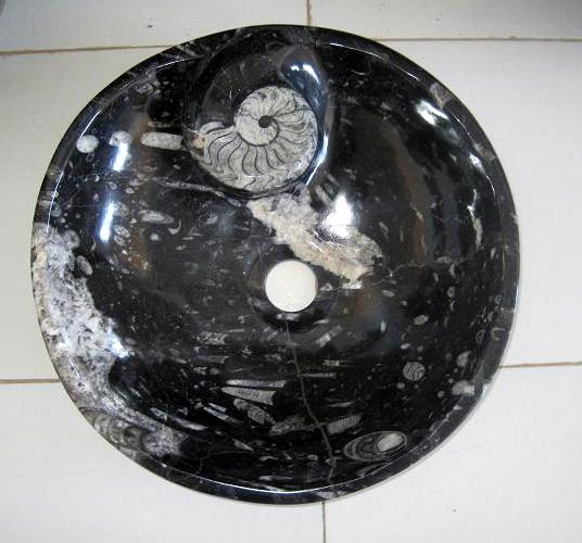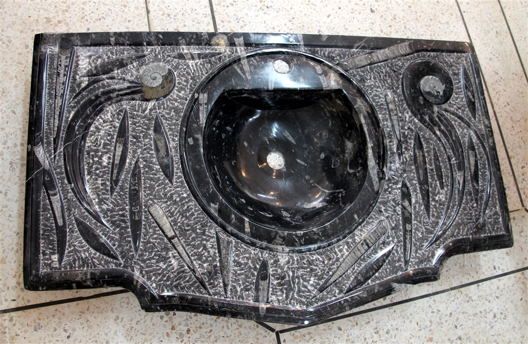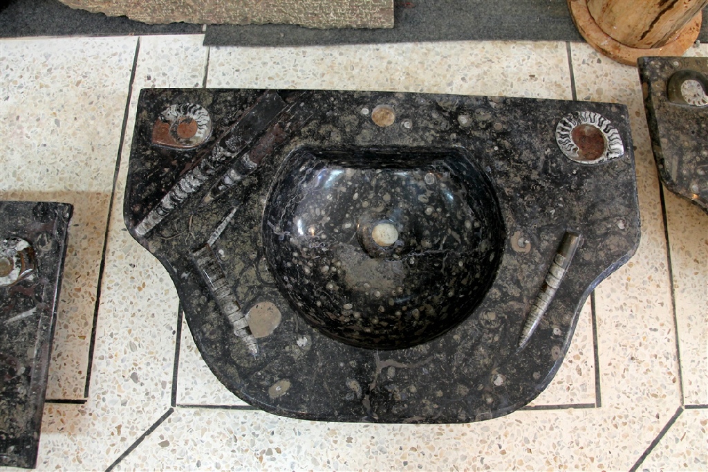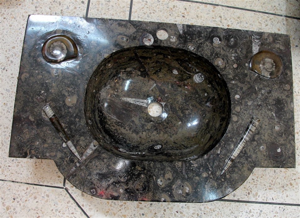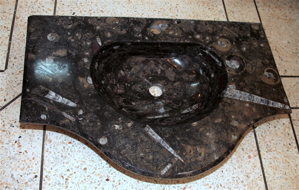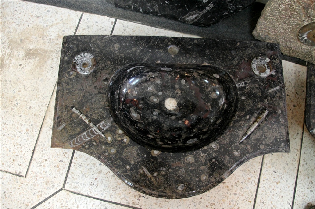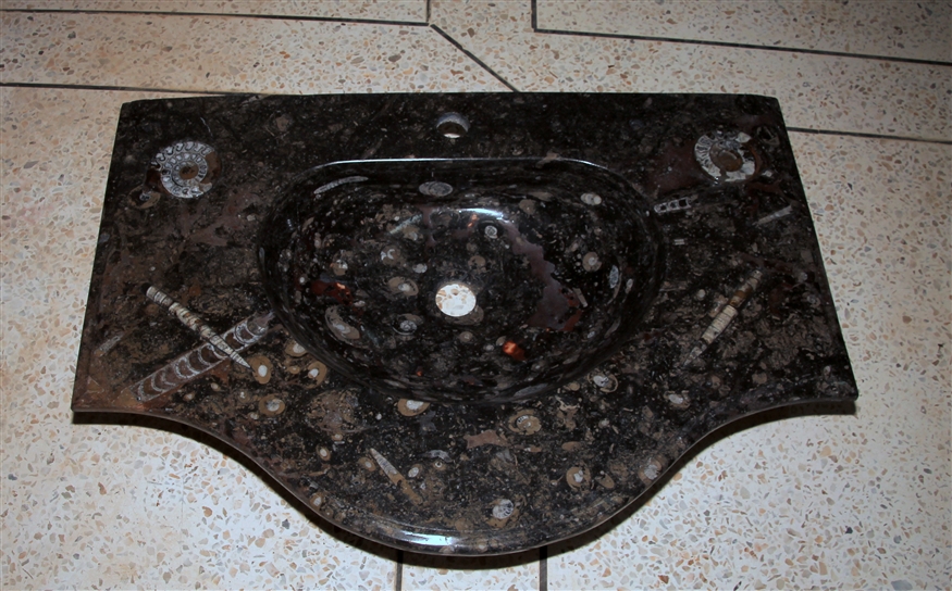 Natures work can be seen in these wonderful stone Sinks. The 345 million year old fossil Ammonites and Orthoceras in each Sink create a stunning natural beauty that will add to your bathroom. These are a “one of kind” find that will enhance your home decoration.
